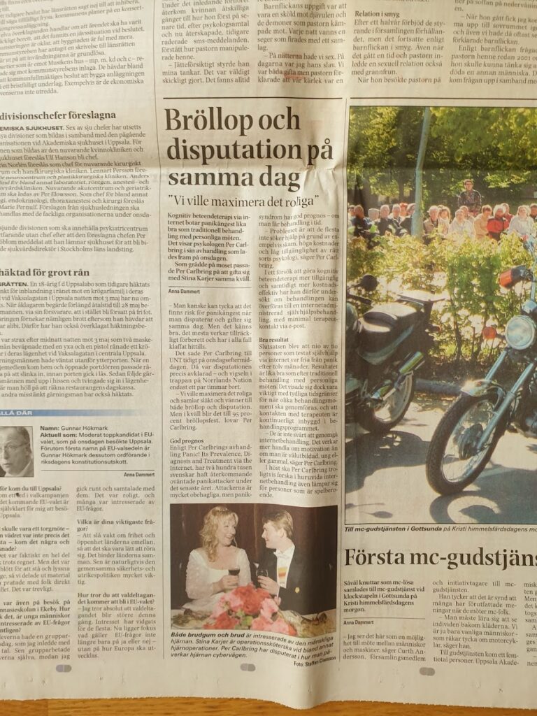 Även om det var en fantastisk förmiddag (med många initierade och kluriga frågor från bland annat Lars-Göran Öst) så var ändå höjdpunkten på kvällen när jag gifte mig på Norrlands nation. Upsala Nya Tidning publicerade ett litet reportage dagen efter: