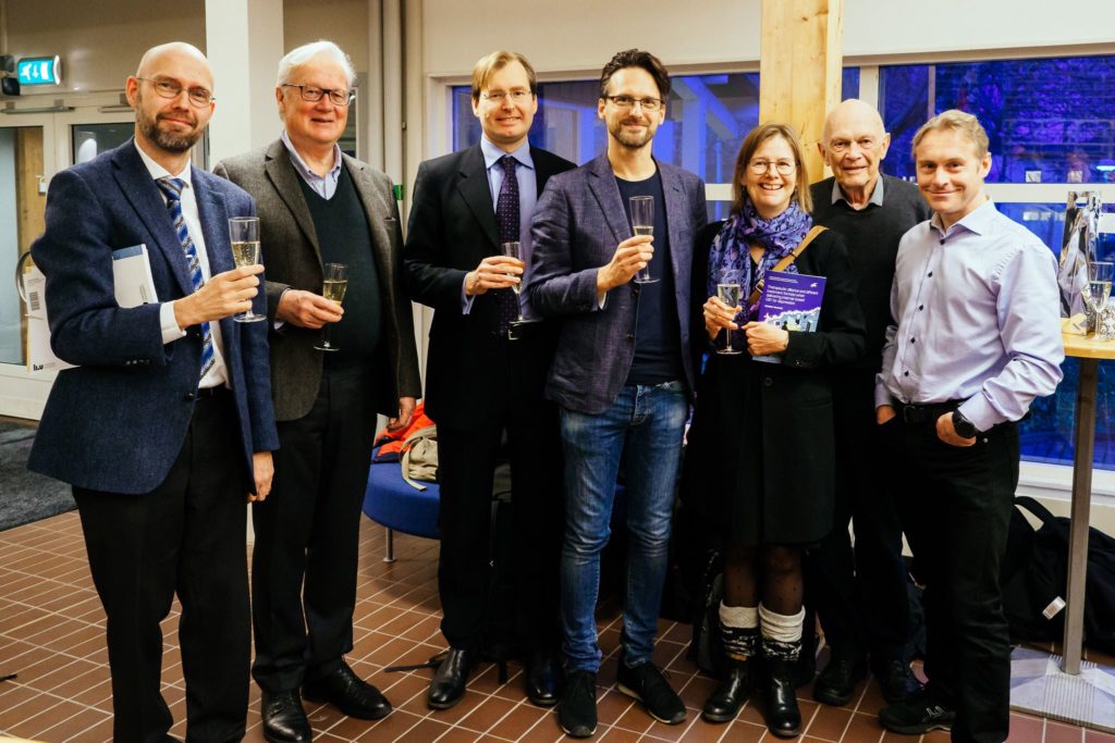 Professor Gerhard Andersson (handledare), Professor Christer Sandahl (betygsnämnd), Professor Edward Watkins (opponent), Doktor Kristofer Vernmark (precis nybliven doktor), Professor Mary Rudner (betygsnämnd), Professor Bengt-Åke Armelius (betygsnämnd) och Professor Per Carlbring (handledare). Snyggt foto av David Brohede
